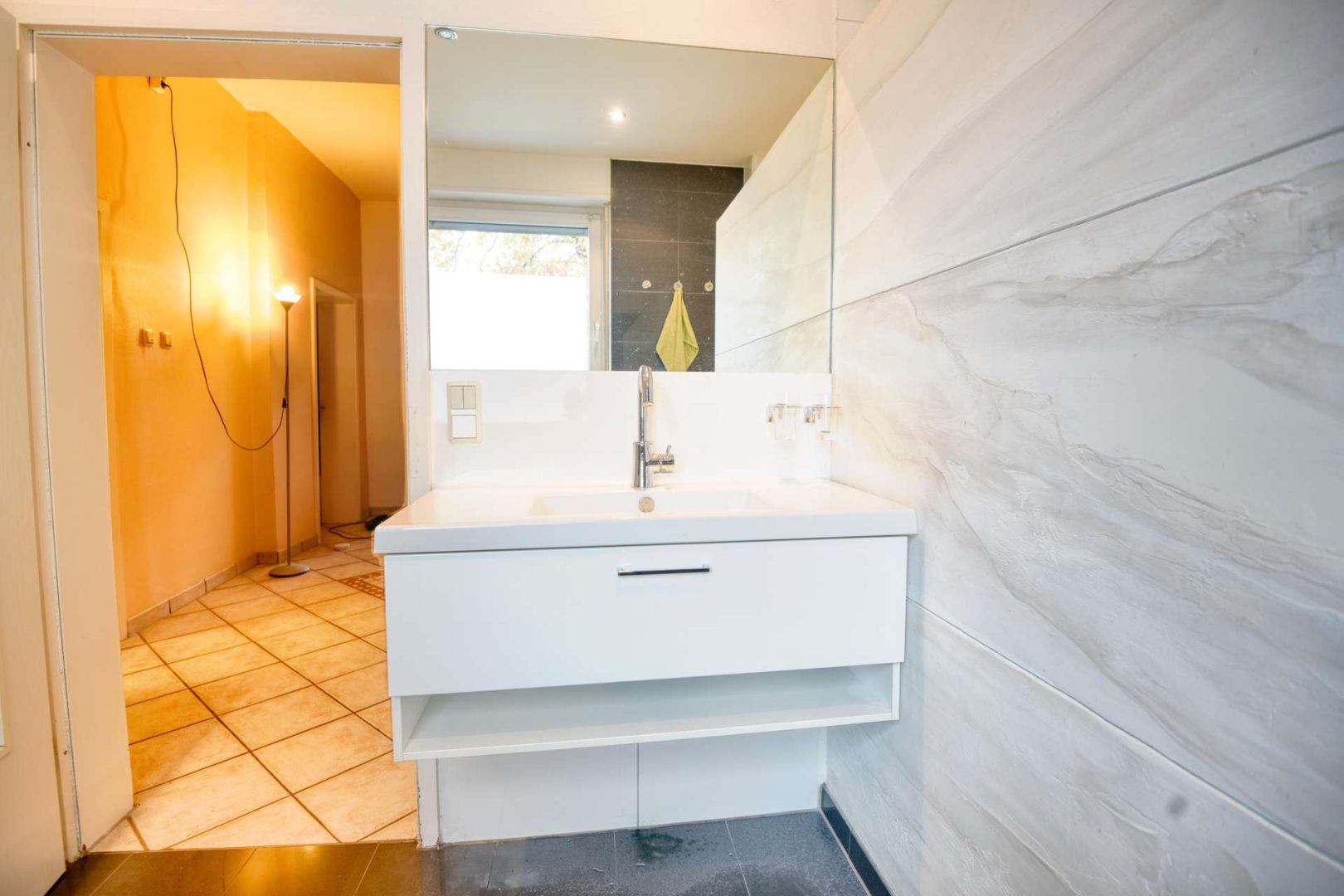 Über das UG, in dem sich u.a. ein Schlafzimmer und ein kleines Bad sowie ein Saunaraum mit Jacuzzi befindet, erhalten Sie einen zweiten direkten Zugang zum Garten auf gleicher Ebene.