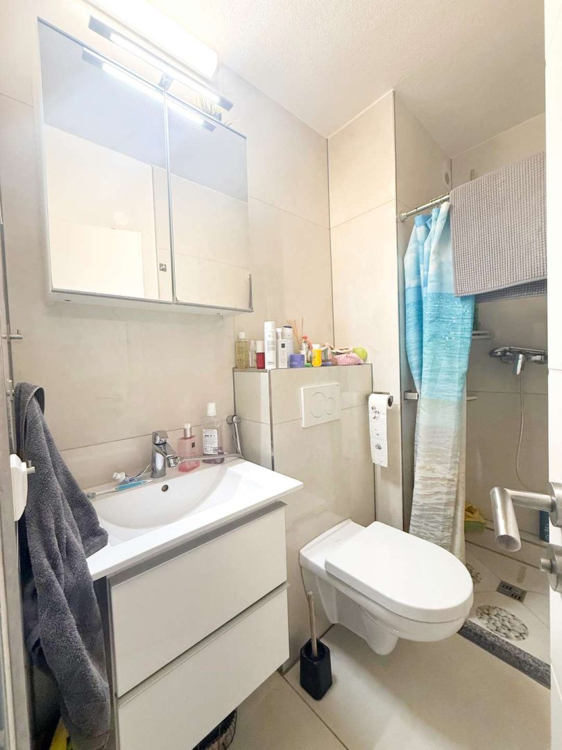 Das Schlafzimmer ist ruhig gelegen und verspricht erholsame Nächte. Das Badezimmer ist mit einer Dusche ausgestattet und bietet genügend Platz für Ihre Badezimmerutensilien. Zusätzliche Highlights der Wohnung sind die pflegeleichten Fliesen und die praktische Abstellmöglichkeit innerhalb der Wohnung.