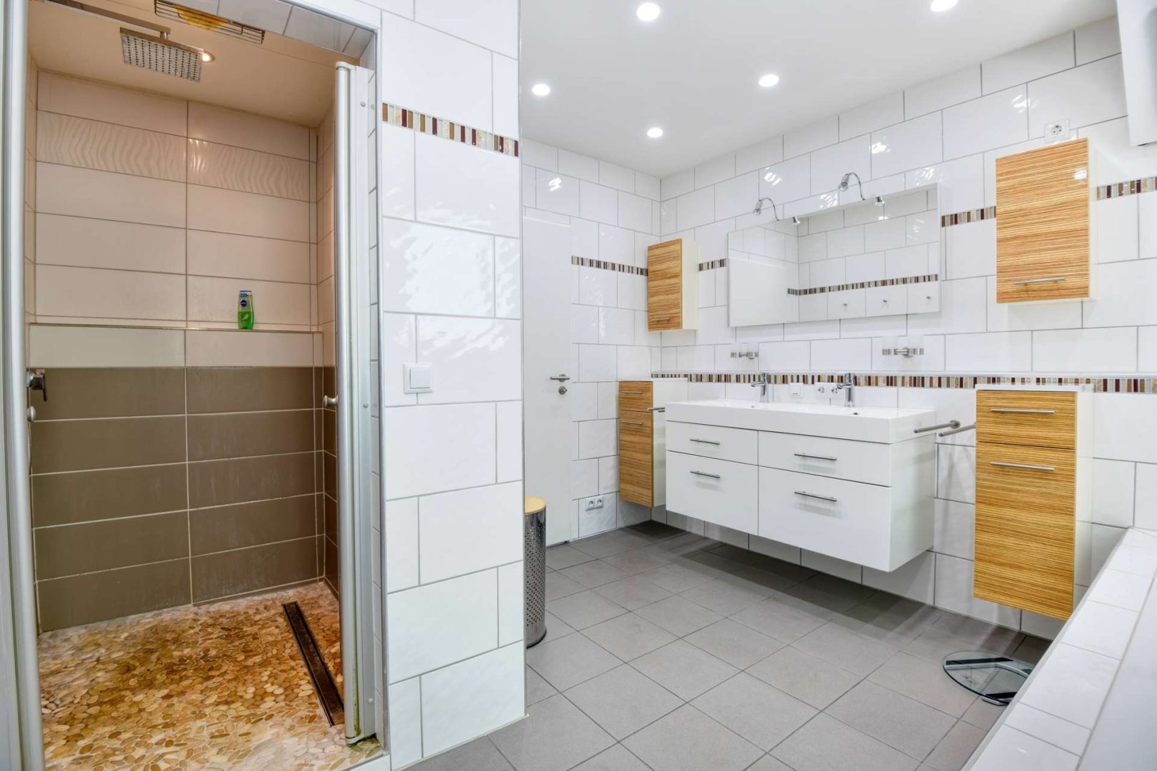 Die Terrasse, der Außenkamin und der gepflegte Garten sowie der direkte Zugang zum Wald lädt zum Verweilen und Entspannen ein – ein idealer Ort für Ihre Kinder zum Spielen oder für gesellige Grillabende mit Freunden. Die beiden Garagen bietet Ihnen zusätzlich Platz Ihre Fahrzeug und weiteren Stauraum.